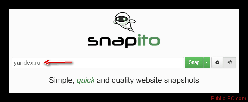 . Здесь в поисковое поле копируем адрес захватываемой страницы и нажимаем кнопку «Snap».