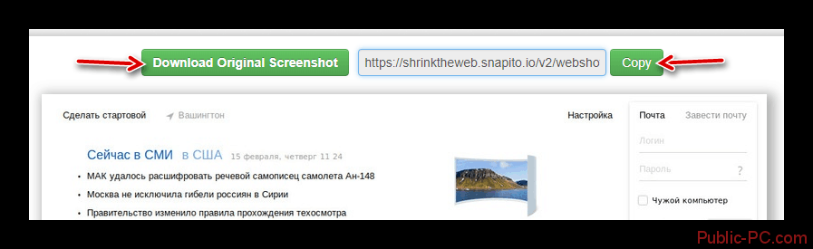 на этот ресурс, вставляем в поле запроса URL захватываемой страницы и нажимаем кнопку «скриншот»: