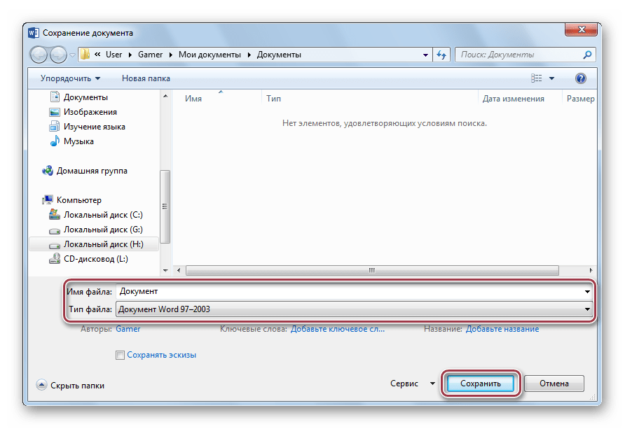 Выбираем тип «Microsoft Word 97-2003 (.doc)». Название можно оставить по умолчанию.