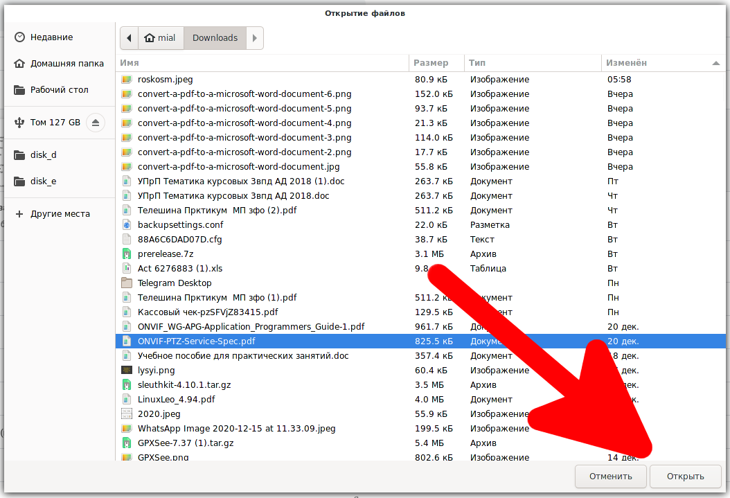 Найдите свой PDF-файл и нажмите кнопку «Открыть».