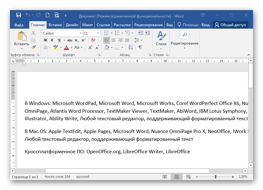 Итак, приведем в пример список программ, которые запускают файлы в формате РТФ на компьютере: