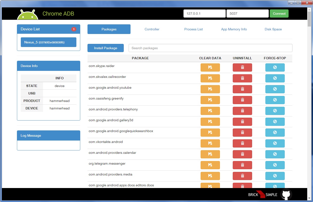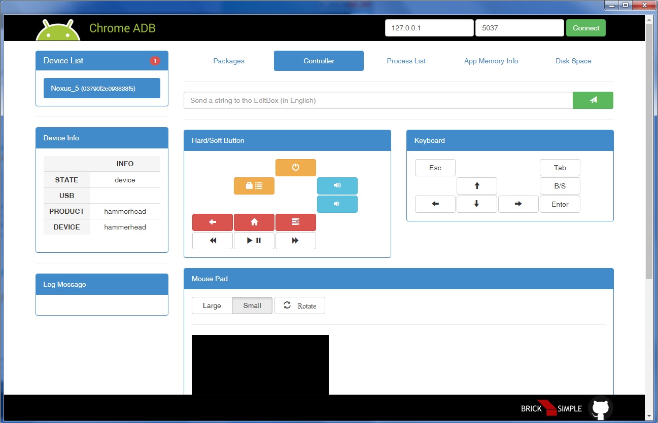 ChromeADB — еще одно приложение для Chrome, с помощью которого можно управлять устройством, установленными приложениями и просматривать объем доступной памяти. Для установленных на устройстве прог можно очистить данные, удалить их и принудительно остановить. Также можно установить APK, который находится на компе. На вкладке Controller можно эмулировать нажатие кнопок питания, громкости, управления медиа, стрелок и так далее. Если установить на устройстве дополнительно прогу ChromeADB, то на экране появится курсор, но использовать его затруднительно, так как на комп изображение не выводится, а просто появляется MousePad с координатами курсора. И пока не кликнешь мышкой, на самом устройстве курсор не переместится, что вообще ставит под сомнение смысл данной функции. На вкладке App Memory Info полезным может стать отображение потребляемых ресурсов конкретным процессом в реальном времени.