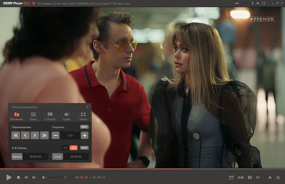 GOM ― стильный видеопроигрыватель для Windows 10 и более ранних версий операционной системы. У него есть все базовые функции, которыми пользуются чаще всего: снимок кадра, покадровая перемотка, включение субтитров. Если звук в видеофайле не устраивает, здесь можно отрегулировать громкость, поиграть с бегунками эквалайзера или применить эффекты (эхо, 3D и другие).