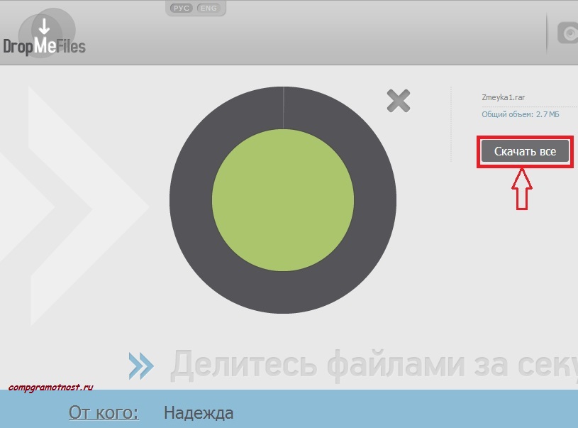 Нажав на кнопку «Скачать все», знакомый скачивает с сервиса DropMeFiles файл (или файлы) на свой компьютер, при этом файлы скачиваются с большой скоростью.