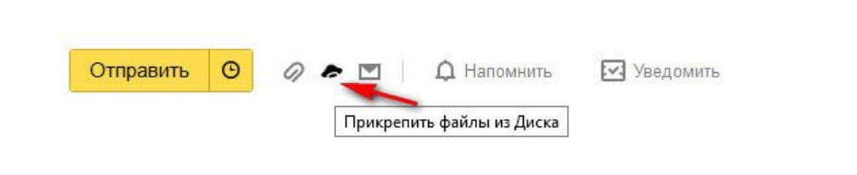 Когда вы откроете письмо, вы увидите значок «Прикрепить файл из диска”, который, лично мне напоминает значок корабля НЛО. После того, как файл будет закреплен, письмо можно отправлять.