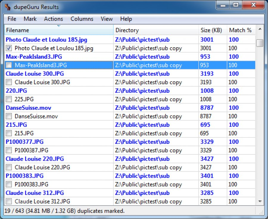Рис. 6. Обнаружение копий с помощью утилиты DupeGuru.