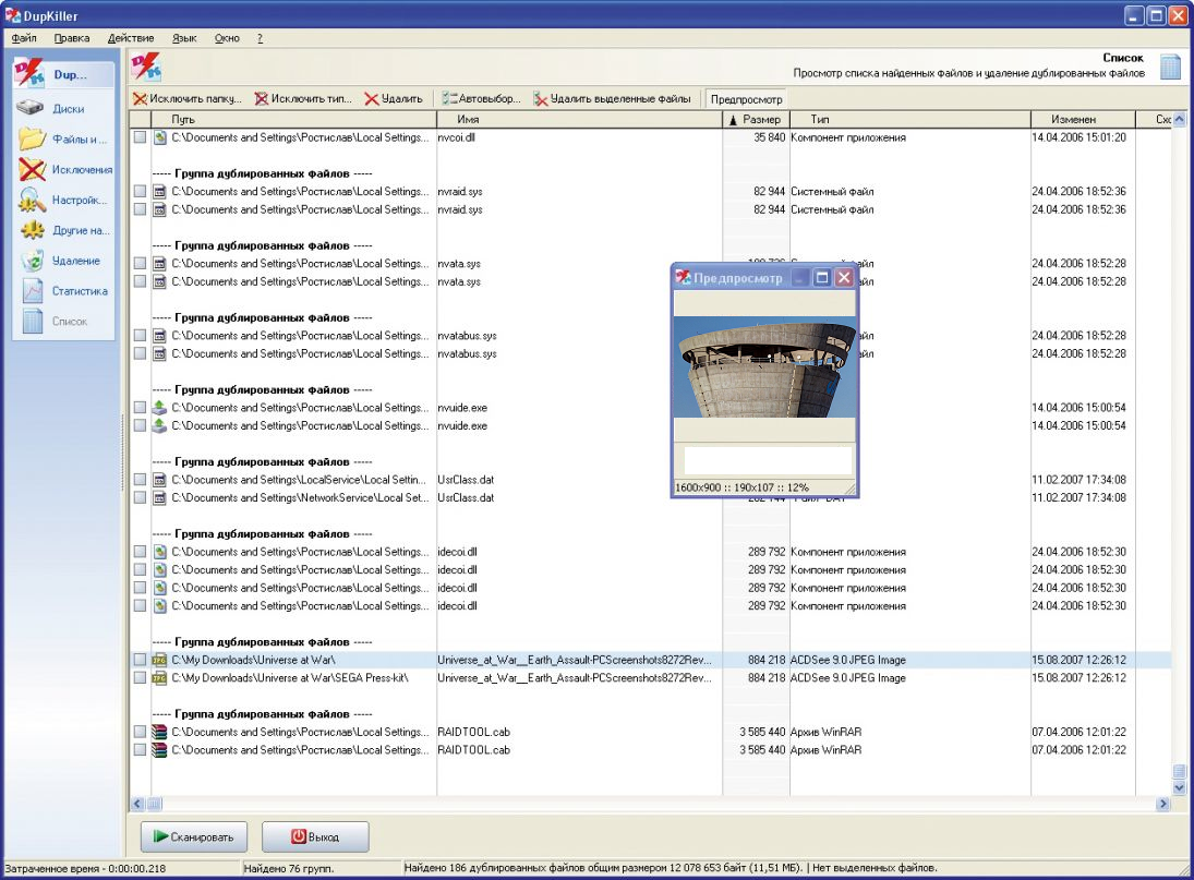 Зато в процессе поиска каждый найдённый дубликат можно просмотреть, не закрывая приложение.