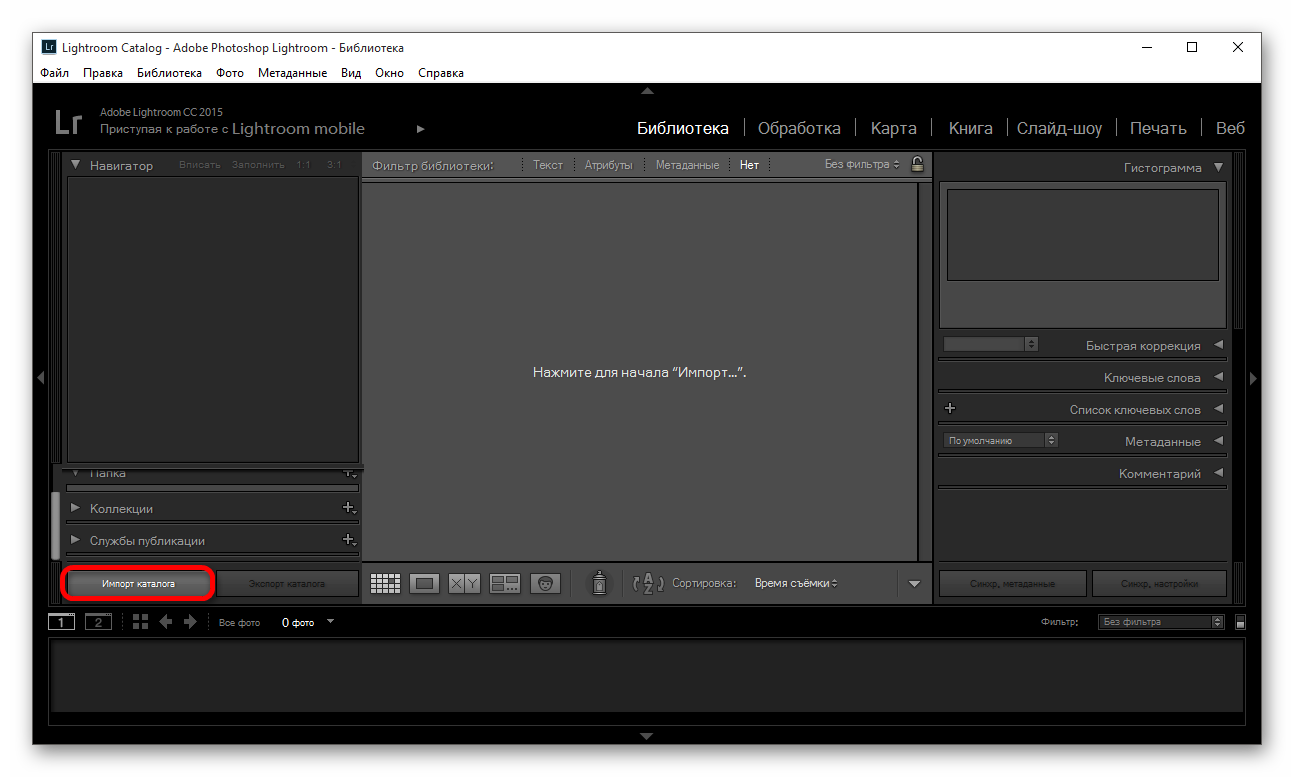- Для того, чтобы загрузить папку с изображениями, вам нужно нажать на кнопку «Импорт каталога».