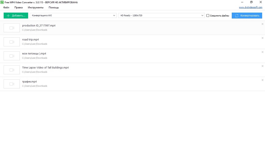 - Нажать кнопку «Добавить файлы» или просто перетащить AVI-видео с компьютера в окно программы.