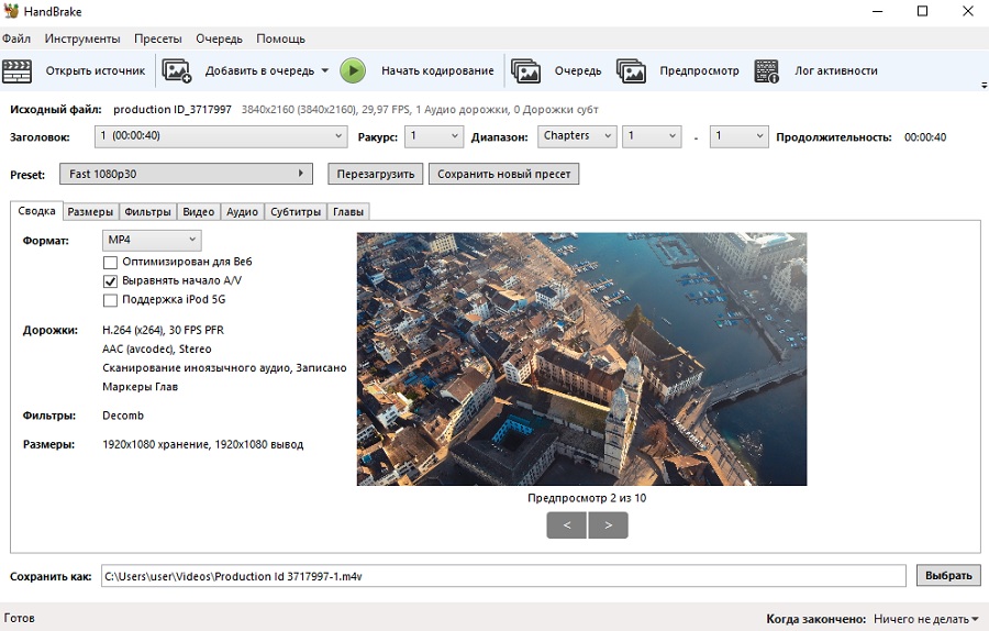 Хенд Брейк – бесплатное кроссплатформенное программное обеспечение для кодирования видео с открытым исходным кодом. Программа поддерживает все популярные мультимедийные форматы, медиаконтейнеры и видеокодеки. В ней можно открывать файлы по одному или сразу целой папкой, создавать очереди из видеофайлов на сжатие, подключать фильтры для увеличения резкости и устранения дефектов изображения – шума, блочных артефактов, гребенки и т.д. Сжатие видео – иногда длительный процесс, но благодаря функции «Предварительный просмотр» можно посмотреть короткий отрывок итогового ролика и оценить его качество, не тратя время на полную кодировку.