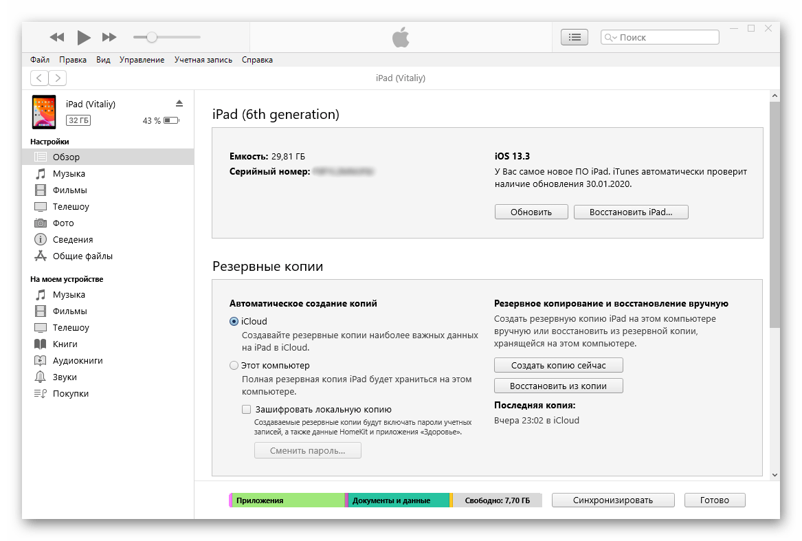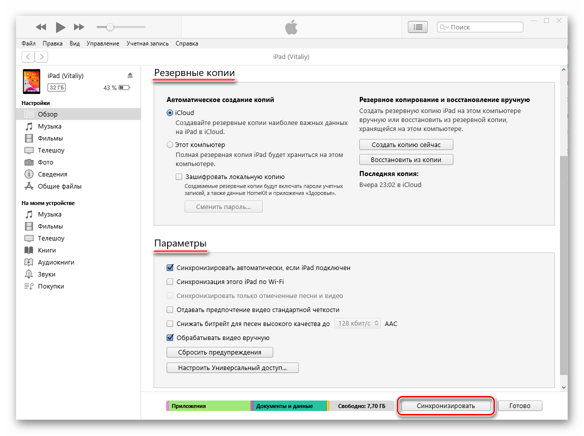 Синхронизация предоставляет возможность переноса как с iPad и iPhone на компьютер, так и в обратном направлении, различных данных. В числе таковых музыка, фильмы, телешоу, книги, фото, а также резервные копии. Последние можно хранить как на локальном ПК, так и в облачном хранилище iCloud, откуда они и могут быть восстановлены, если такая необходимость возникнет. На нашем сайте есть отдельные руководства не только о синхронизации, но и о работе с бэкапами, ссылки на них даны ниже.