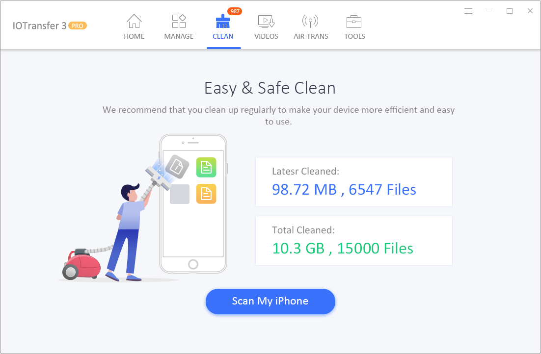 Расширенная функция CLEAN поддерживает очистку большего количества кешей и ненужных файлов на вашем устройстве iOS, чтобы освободить больше места.