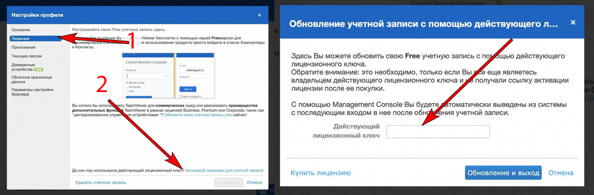 Если данный софт используется в коммерческих целях (дистанционная помощь коллегам или клиентам, подключение к серверам организаций, оказание платных услуг по настройке софта или устройств и т. д.), то нужно приобрести лицензию и активировать ее.