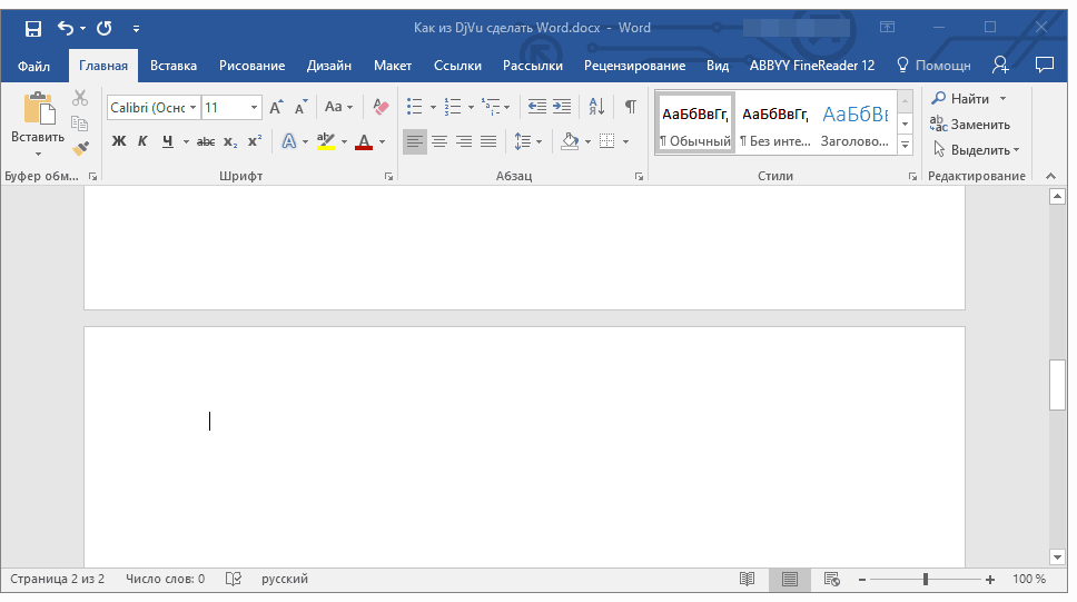 Первый этап пройден, текст из djvu файла успешно извлечен. Теперь сделаем из него документ Word. Создайте новый «вордовский» пустой документ.