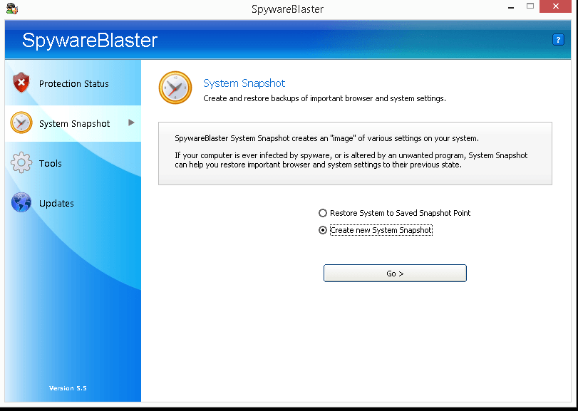 Это достигается путем включения предварительно созданного списка блокировок (которые вы можете обновить вручную в любое время) для определенных веб-сайтов, файлов cookie и скриптов.Параметр «Снимок системы» позволяет создать резервную копию различных настроек системы, чтобы в случае, если шпионское ПО действительно внесло изменения, вы могли восстановить резервную копию, чтобы восстановить настройки.