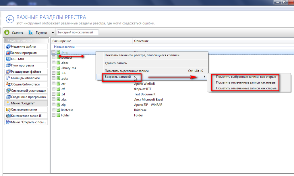 Новыми считаются появившиеся не более двух дней назад. Вручную можно сменить «статус»: с старого на новый и наоборот. Элементы выделяем галочкой для групповой замены (или кликнуть только на один левой кнопкой, сделав его активным). Правой кнопкой вызываем контекстное меню. В нем выбираем «Возрасты записей», затем нужный пункт. Например, «Пометить отмеченные как старые».