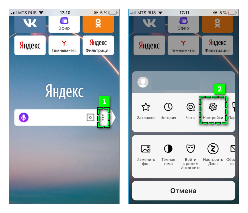 - Перейдите в «Настройки» веб-обозревателя через кнопку параметров.