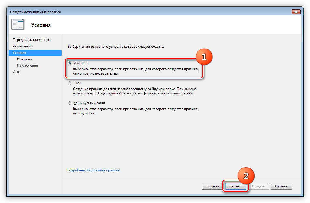 Здесь оставляем значение «Издатель». Нажимаем «Далее».