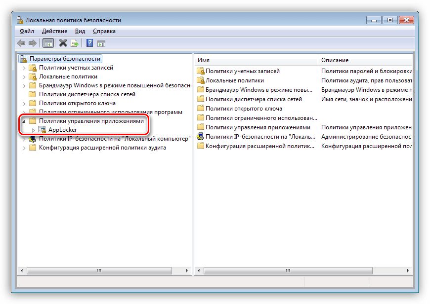 В «Локальной политике безопасности» имеется раздел с названием «AppLocker», в котором можно создавать различные правила поведения программ. До него нам и нужно добраться.