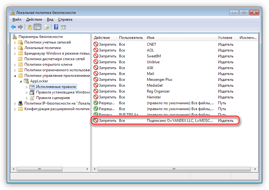Список приведенных выше издателей можно самостоятельно дополнить вручную с помощью одной из функций «AppLocker». Для этого необходимо раздобыть исполняемый файл или установщик той программы, которую разработчик «зашил» в дистрибутив. Иногда сделать это можно, лишь попав в такую ситуацию, когда приложение уже установлено. В других случаях просто ищем через поисковик. Рассмотрим процесс на примере Яндекс Браузера.