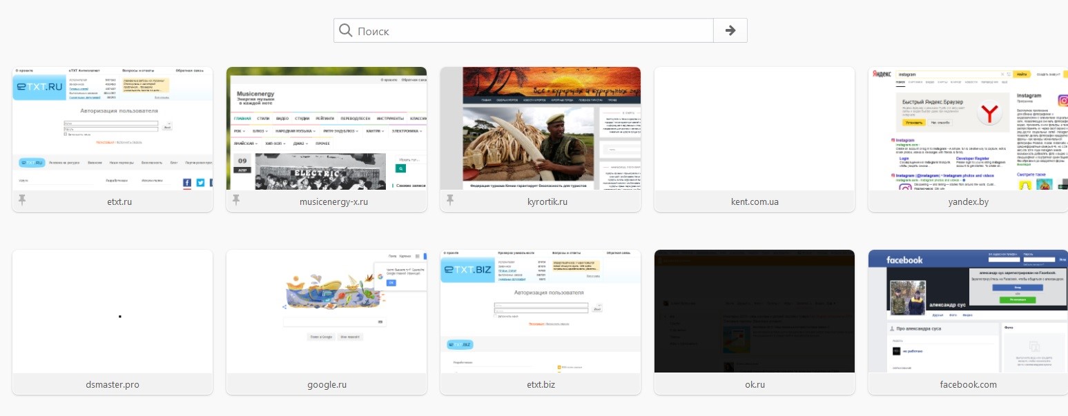 - Вид закладок – пользователи могут задать внешний вид для плиток: картинка с логотипом или скриншот сайта.