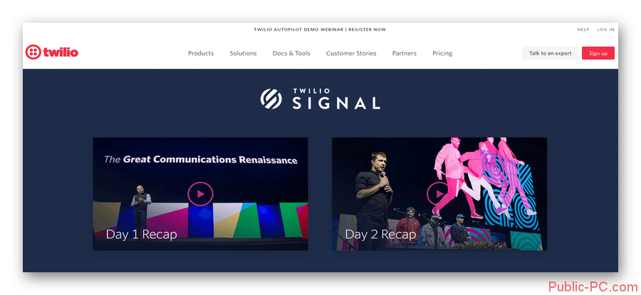 Чтобы пользоваться Twilio, придется зарегистрироваться на сайте. Для этого кликните кнопку «Sign Up».
