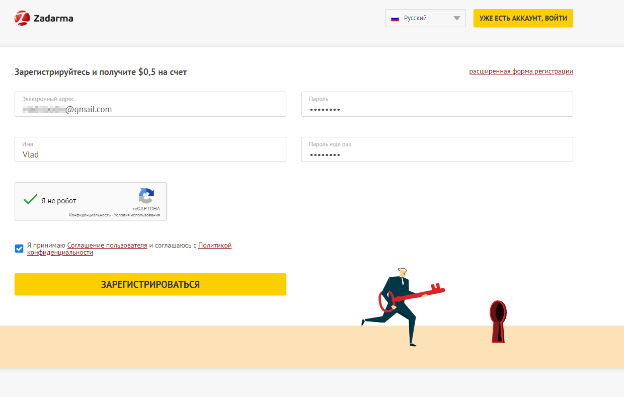 Чтобы воспользоваться услугой, необходимо пройти простейшую регистрацию: