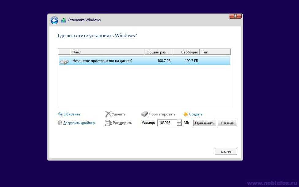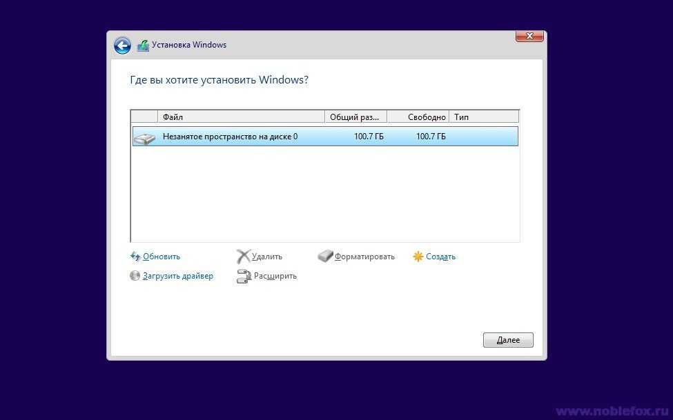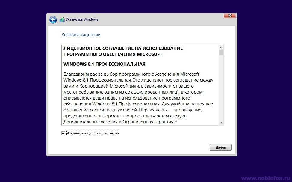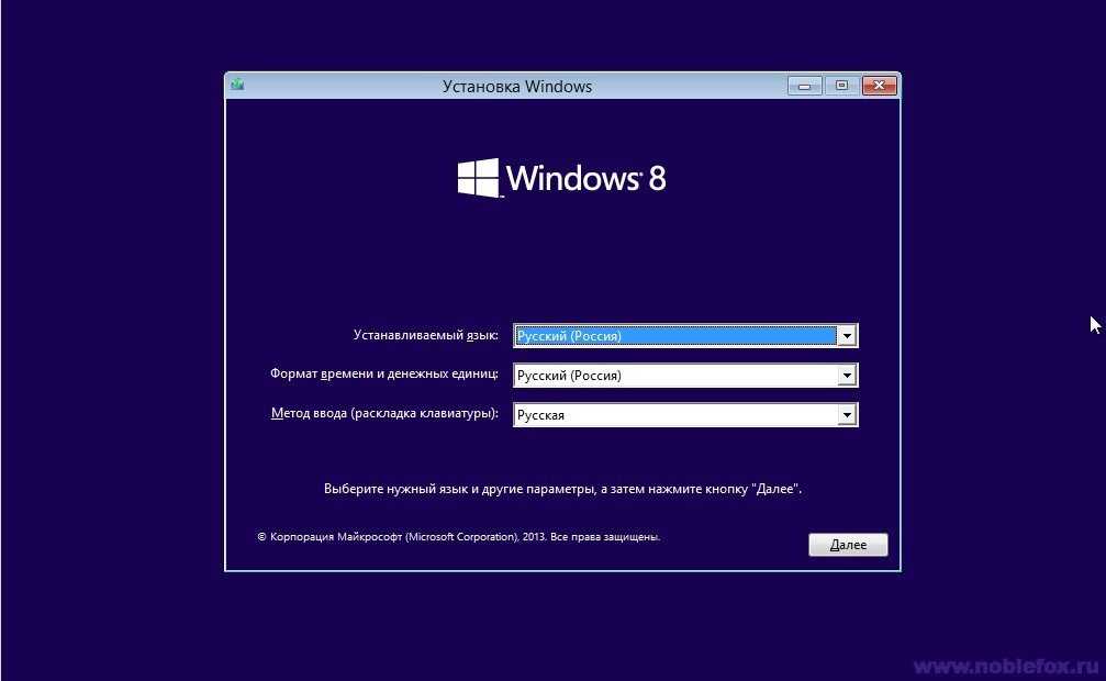 Вам потребуется выбрать язык установки и системы и нажать кнопку «Далее».