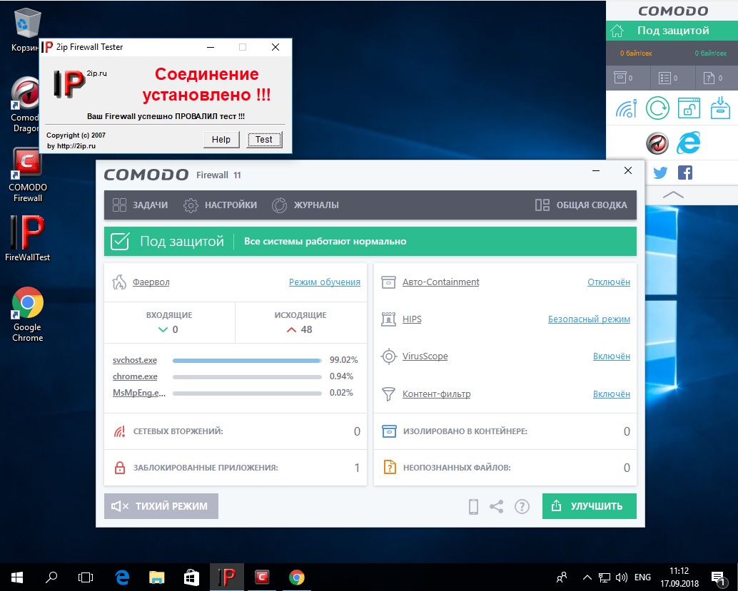 В отличие от предшественников, перед нами достаточно мощный, многофункциональный фаервол, который идет в паре с антивирусом — Comodo Antivirus.