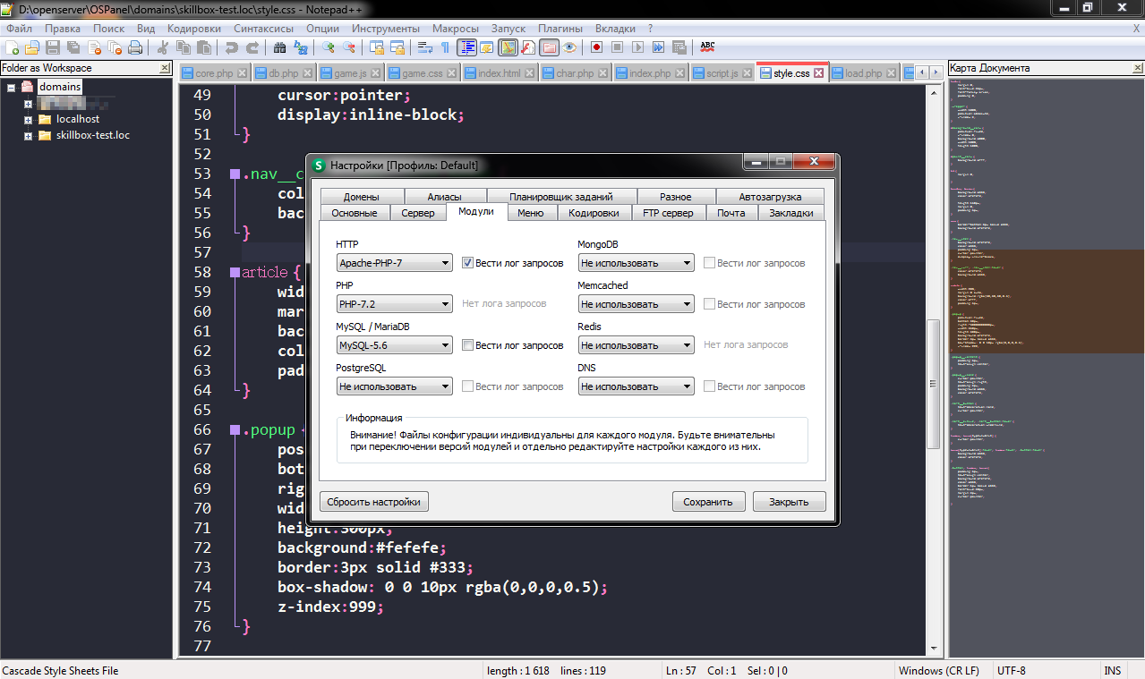 Альтернатива Denwer, но более удобная. Кроме того, разработчики следят за ее актуальностью, поэтому, чтобы начать работать, достаточно в настройках выбрать необходимые версии всех модулей. Но есть и недостаток — большой объем.
