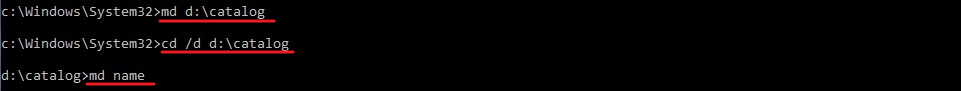 md d:\Catalog cd /d d:\catalog d:\catalog>md Name