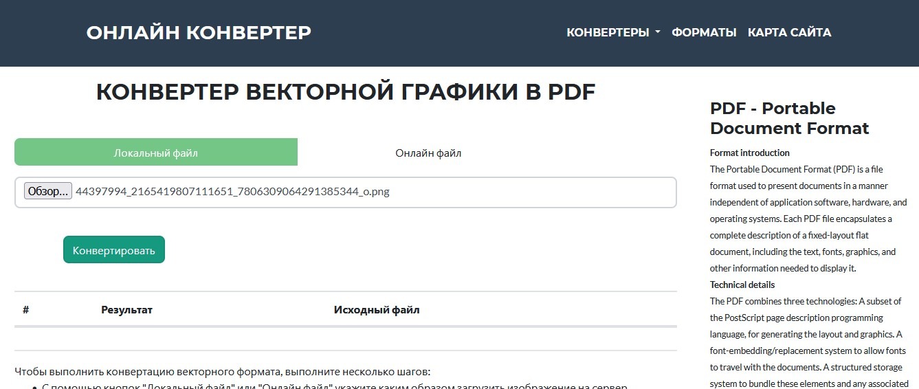 Иностранный сервис для конвертации файлов. Поддерживает более 1100 различных форматов. Также доступен в виде расширения для браузера Google Chrome. Для того чтобы конвертировать векторное изображение, необходимо загрузить исходный файл на главной странице сервиса и указать требуемый формат. После клика по кнопке «Convert Now» начнется преобразование рисунка. Процедура занимает 10-15 секунд (зависит от объема исходного файла).