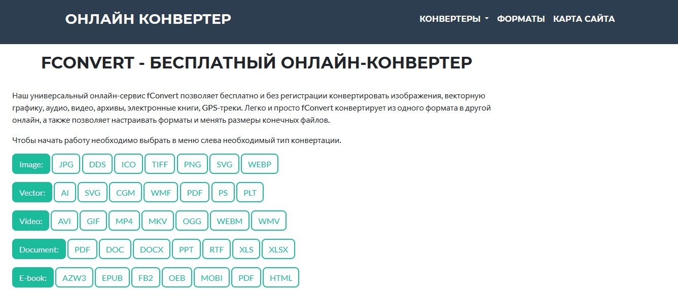 Русскоязычная платформа для конвертации файлов в различные форматы. Справляется со своей задачей достаточно быстро. Платных тарифов у этого онлайн-конвертера нет.