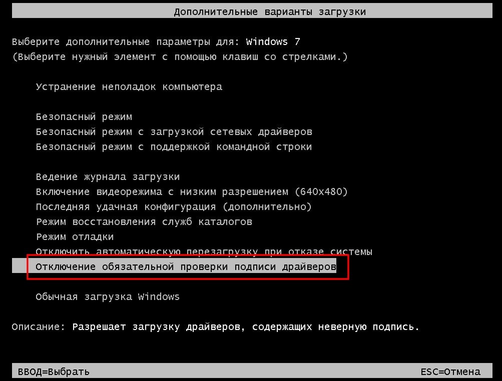 Загрузка windows 7 без проверки цифровой подписи