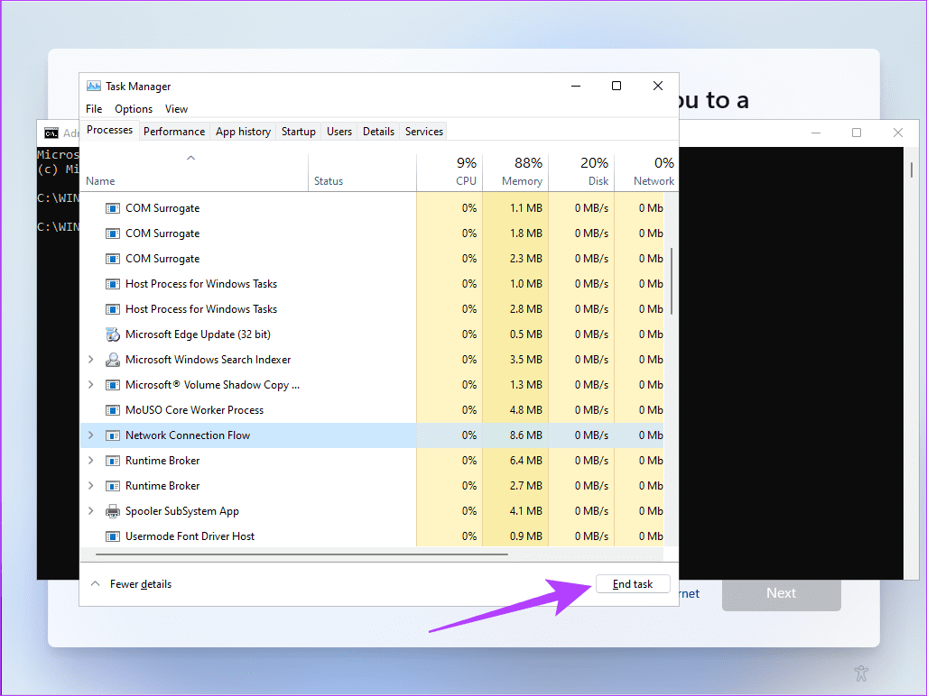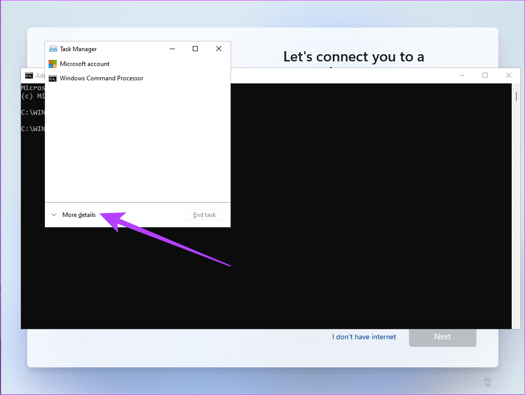 Шаг 8: Вот и все. Теперь вы можете закрыть окно диспетчера задач и командной строки. На странице установки Windows вам будет предложено ввести имя автономной учетной записи.