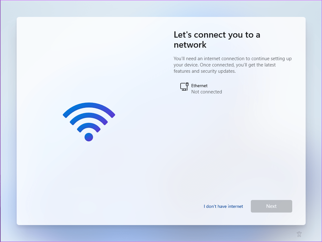 Шаг 2: Теперь программа установки представит вам страницу «Подключим вас к сети». Вот где происходит трюк.