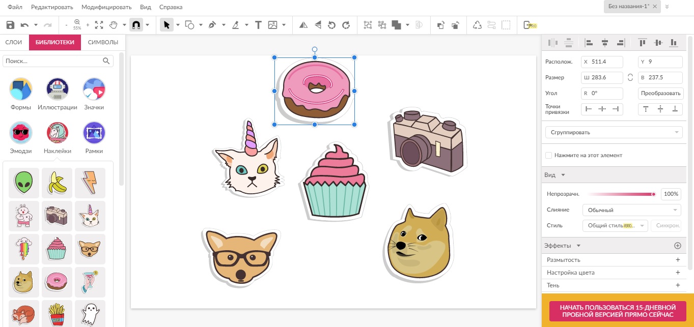 Так как редактор работает , то над проектом можно работать в команде и делиться ссылкой на макет. На сайте присутствует большая коллекция готовых символов и векторных элементов, можно загружать свои файлы, свободно трансформировать слои и преобразовать изображения в векторный формат. Это отличный вариант для тех, кто хочет работать над проектами с любого устройства, так как весь функционал можно использовать без скачивания на компьютер.