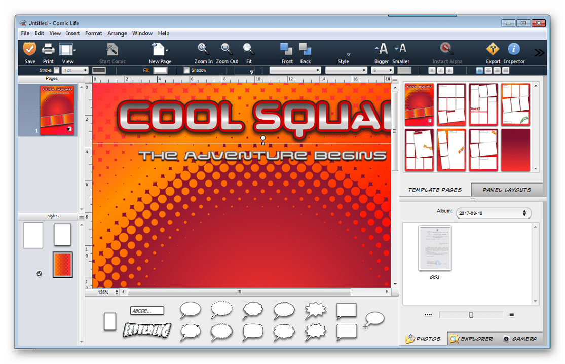 Comic Life подойдет не только пользователям, которые занимаются созданием комиксов, но и тем, кто хочет создать стилизированную презентацию. Обширные возможности программы позволяют быстро формировать страницы, блоки, вписывать реплики. Кроме этого установлено некоторое количество шаблонов, которые подойдут под разные тематики проектов.