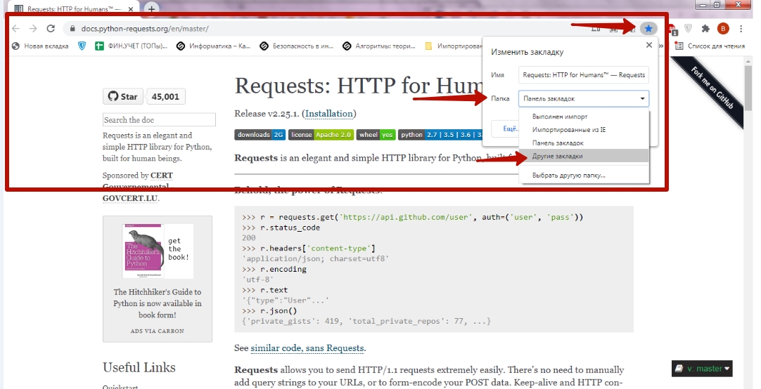 Похожим образом можно сохранить ссылку с адресом на нужную страницу в указанную папку. Для этого достаточно указать «Другие закладки» при сохранении сайта.