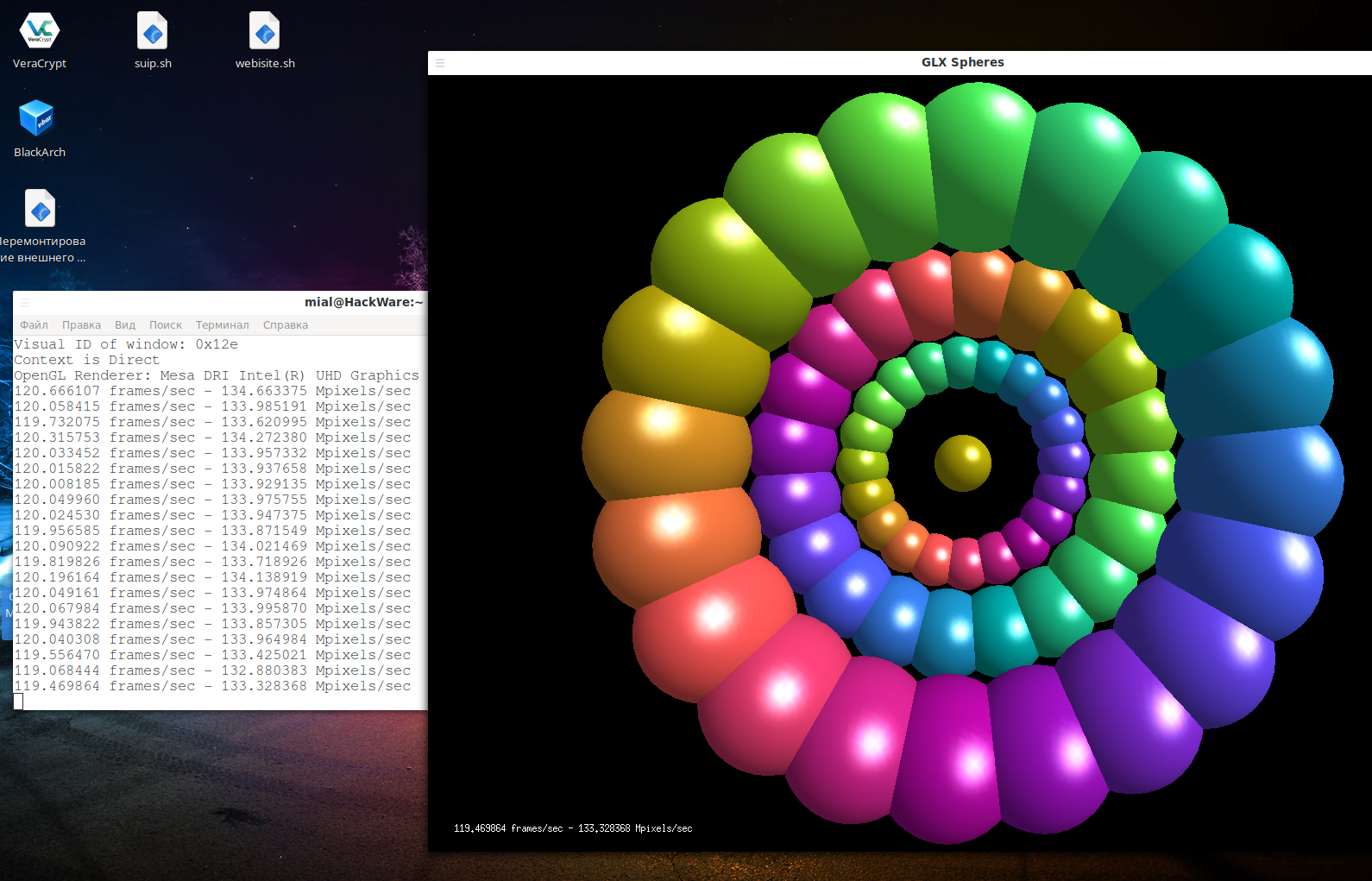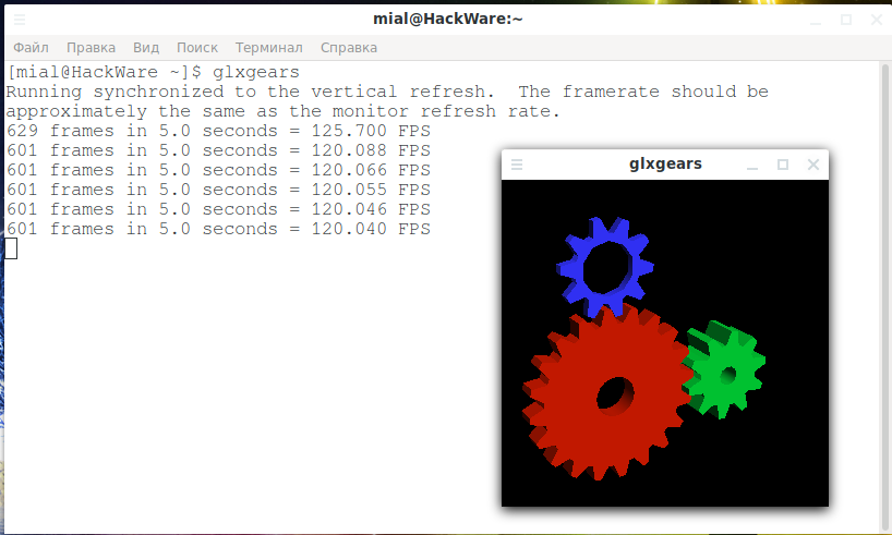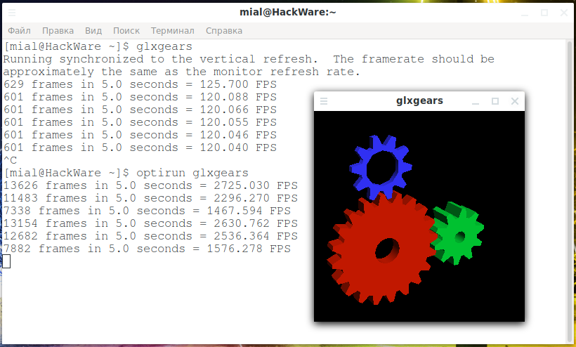 Эта же самая команда, но запущенная через optirun из пакета Bumblebee: