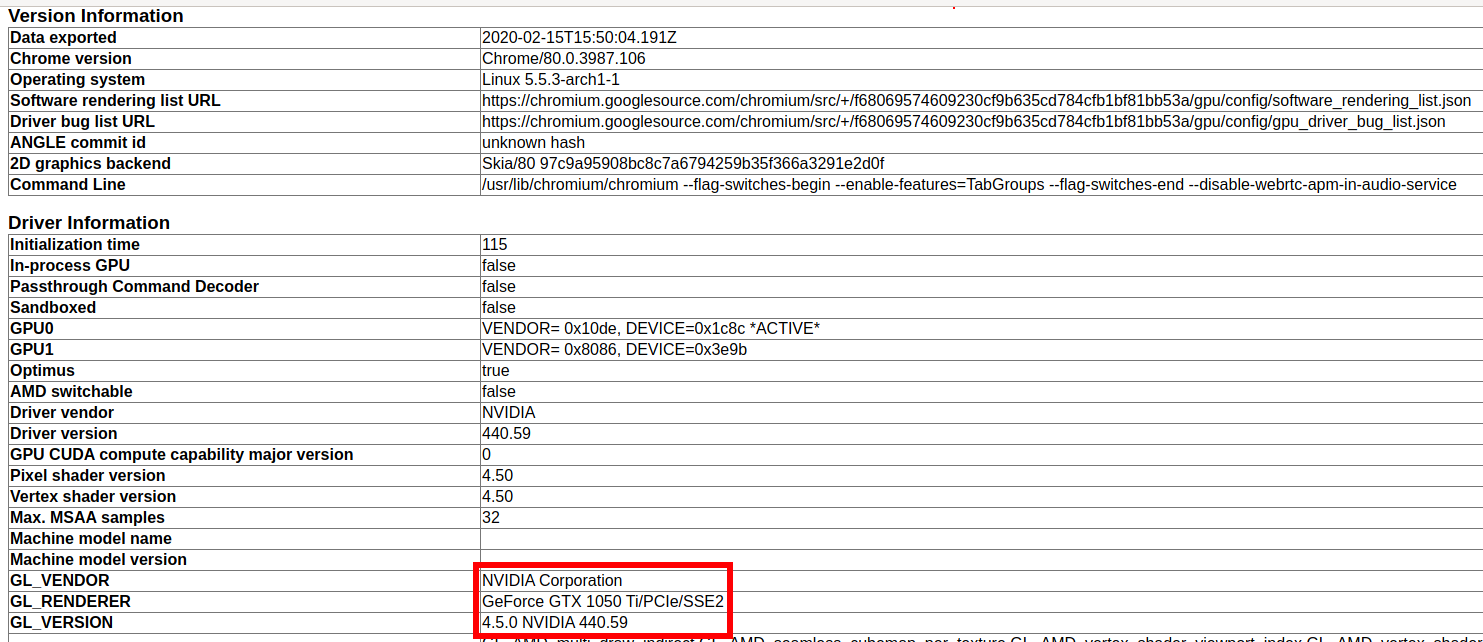 optirun glxinfo|egrep "OpenGL vendor|OpenGL renderer"