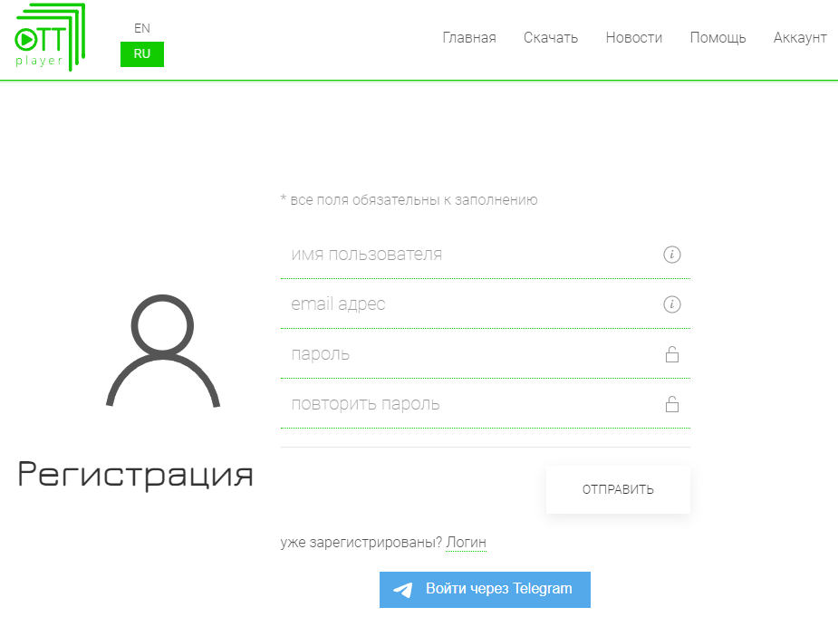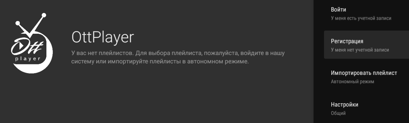 - Зарегистрируйтесь на официальном сайте — https://ottplayer.es/account/registration