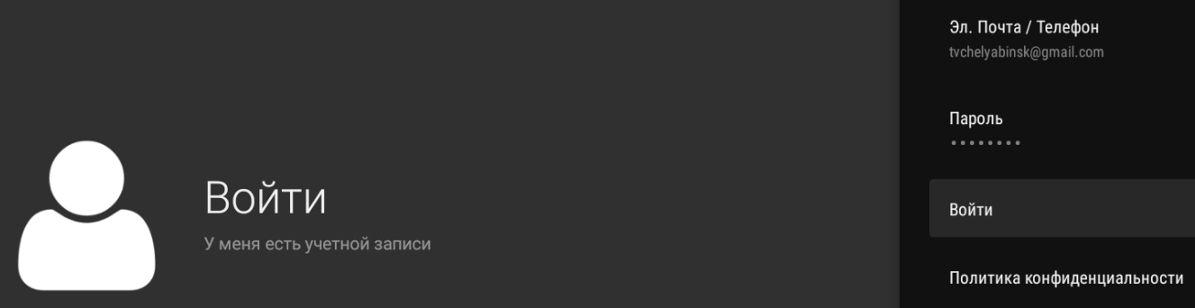 Введите электронную почту и пароль, которые указывали при регистрации на сайте https://ottplayer.tv/ и нажмите кликните мышью на иконку возврата. На пултье серая кнопка.