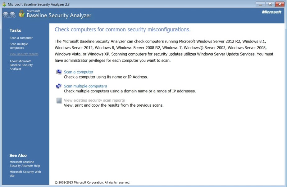 - Загрузите Microsoft Baseline Security Analyzer из Центр загрузок Microsoft .