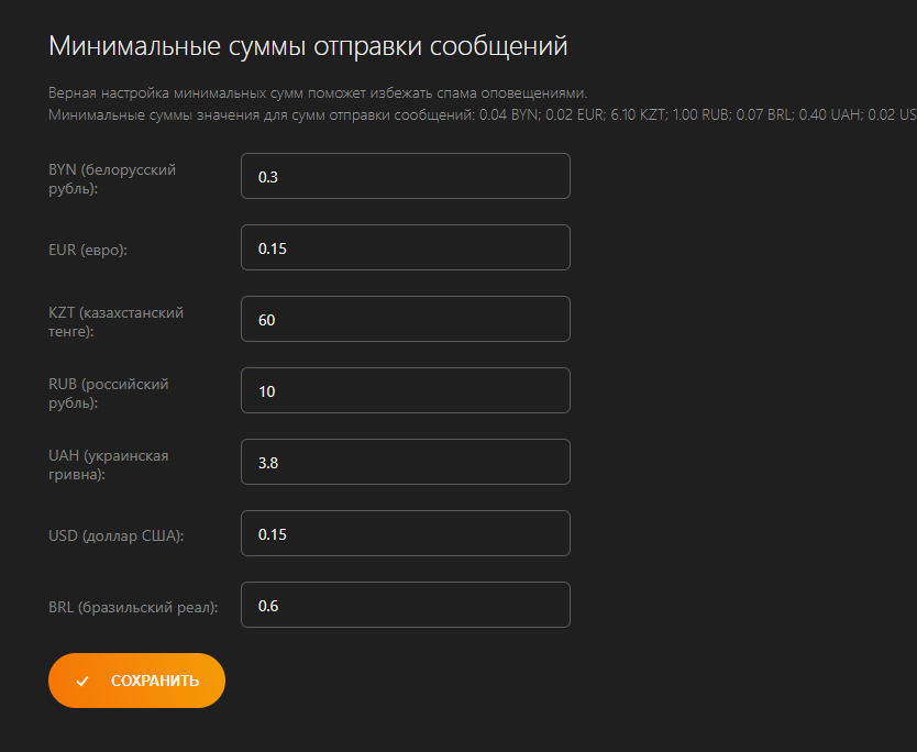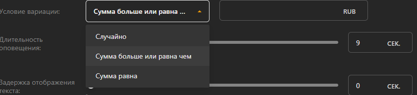 Важно: вы можете установить не только минимальную сумму пожертвования, но и максимальную сумму — это будет полезно, если вы хотите создать другой дизайн оповещения в зависимости от суммы