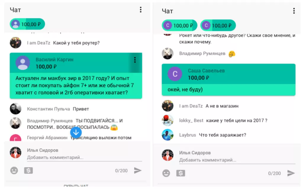 Во время проведения прямых эфиров пользователи пишут сообщения, а те, кто хочет выделяться или отправить вам деньги, пишет платное сообщение.