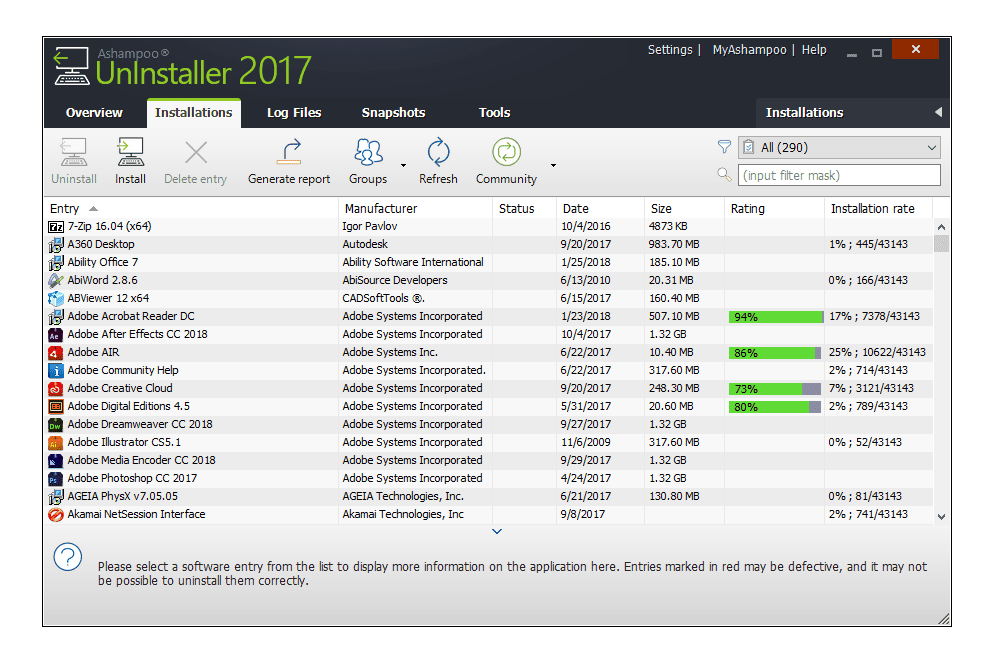 Ashampoo UnInstaller — мощная программа для удаления установленных в операционной системе программ. Программа имеет режим отслеживания установки приложений для дальнейшего полного удаления всех следов установленной программы.