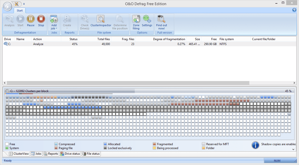 O & O Defrag Free Edition имеет организованный и простой в использовании интерфейс. Он поддерживает общие функции, имеющиеся в аналогичном программном обеспечении дефрагментации, такие как оптимизация диска, просмотр списка всех фрагментированных файлов и проверка диска на наличие ошибок.