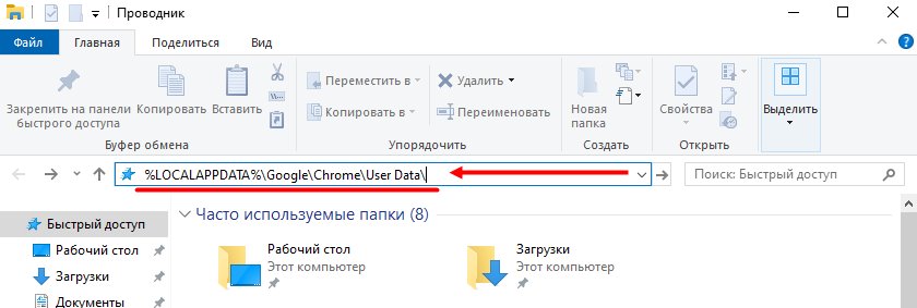 - Введите команду: %LOCALAPPDATA%\Google\Chrome\User Data и кликните на Enter;
