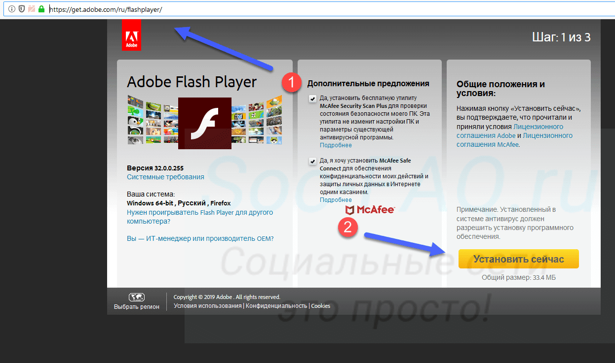 Обновление Flash Player с официального сайта Adobe